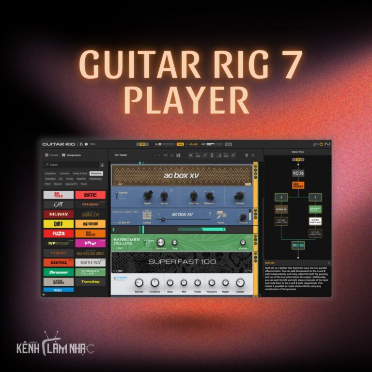 Guitar Rig 7 Player là phiên bản miễn phí của hệ thống amp simulation và multi-effects rack mạnh mẽ, cung cấp đầy đủ công cụ cần thiết để xử lý, tạo màu và định hình âm thanh trong môi trường sản xuất hiện đại – cực kỳ tối ưu cho các Guitarist.