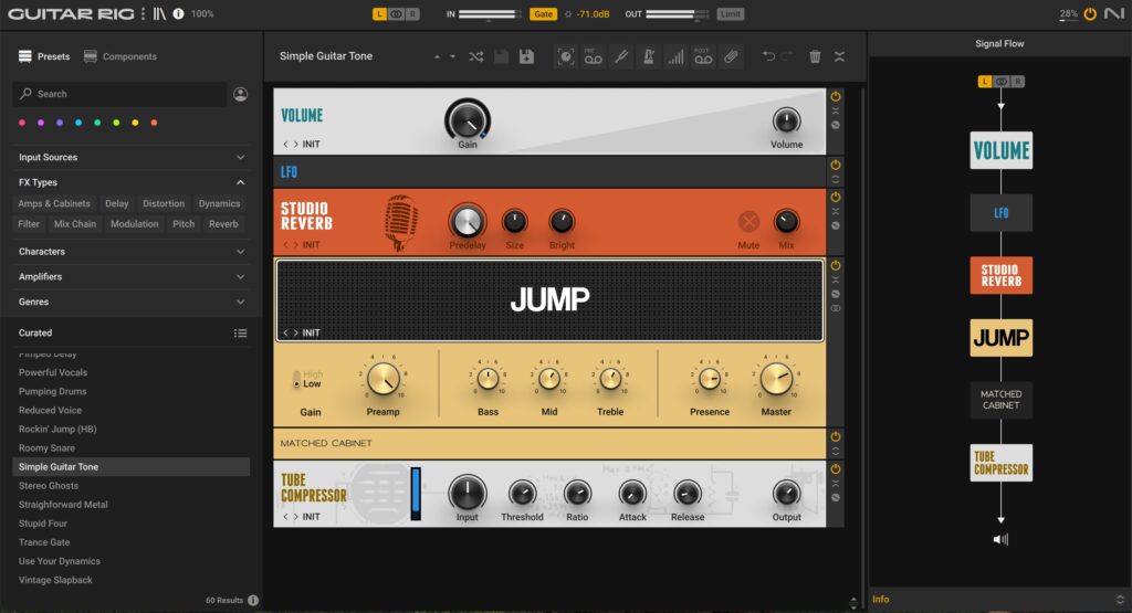 Sản phẩm bao gồm amp simulation đi kèm cabinet đồng bộ, cùng 26 hiệu ứng và công cụ xử lý được chọn lọc kỹ lưỡng. Với 60 preset sẵn sàng sử dụng, người dùng có thể bắt đầu ngay mà không cần thiết lập phức tạp.